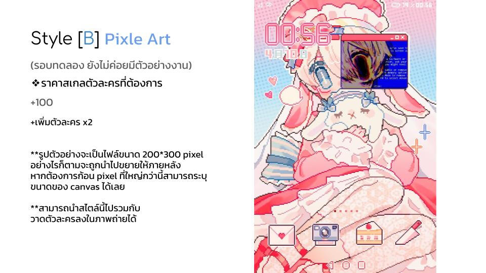 | *เป็นงานคัสต้อม สามารถเลือกได้เองว่าอยากใส่อะไรบ้าง | *ภาพตัวอย่างเป็นงานวาดเล่นไม่ได้เก็บเส้นละเอียด | |