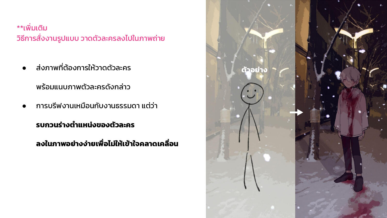 ● กรณีงานวาดตัวละครลงในภาพถ่ายเราจะเบลอภาพของคุณเหลือไว้ให้เห็นผลงานเท่านั้น